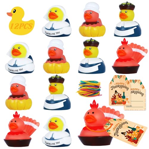 12 PCS Rubber Ducks Bulk Set with 12 Thank You Cards & Bands, Mini Rubber Ducks, Multi-Use Bath Toys and Party Favors for Kids, Ideal for Children