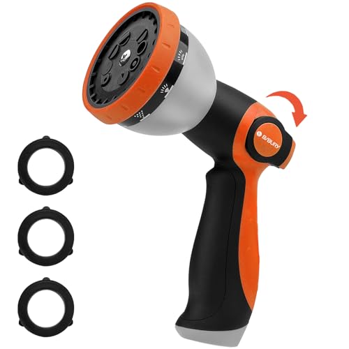 Water Hose Nozzle Sprayer, BIBURY Hand Sprayer with 10 Spray Patterns and On Off Valve Thumb Control, High Pressure Garden Hose Spray Nozzle for Watering Plants, Cleaning, Car Wash and Showering Pets
