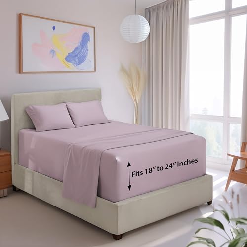 Hearth & Harbor Extra Deep Pocket Queen Size Sheets - 4 Piece Hotel Luxury Queen Size Sheet Set Fits Up to 24" Mattress - Ultra Soft Luxury Bed Sheet Set - Queen, Dusty Purple