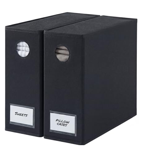2 Pack Sheet Organizers - Foldable Storage Sheets Set Organizer for Linen Closet - King & Queen Size - Folder Keeper with Window XL - Blanket, Duvet & Pillowcases Dustproof Bedding Container - Black