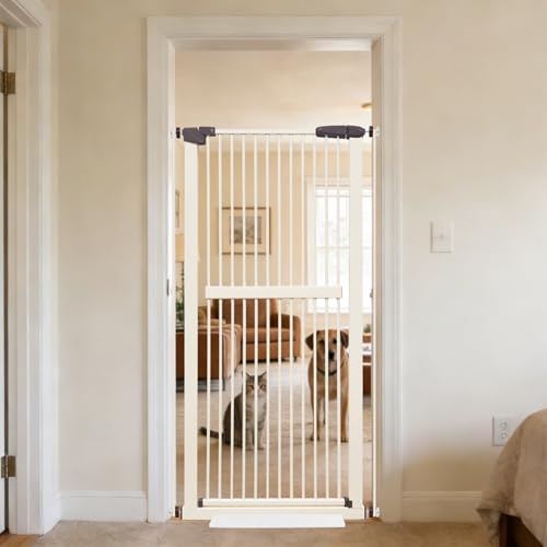 Lumizone Extra Tall Cat Gate 61.02" High Pressure Mounted Extra Wide 30.12"-34.05" (17Sizes) 1.37" Gap No Drilling Auto-Close Tall Pet Gate for Dogs (Cream, 30.12"-34.05"/76.5-86cm)