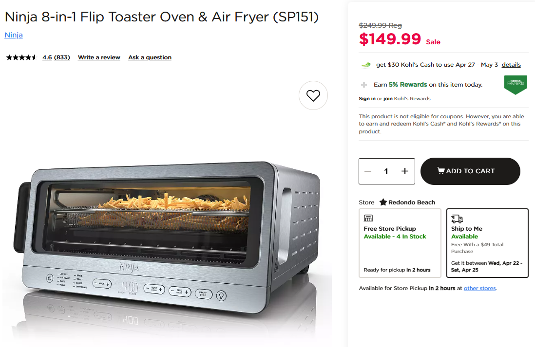 Ninja 8-in-1 Flip Toaster Oven & Air Fryer (SP151)
