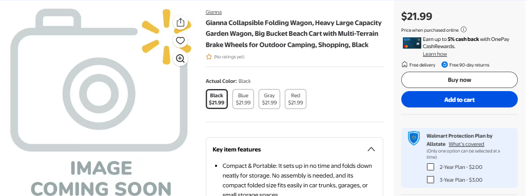 Gianna Collapsible Folding Wagon, Heavy Large Capacity Garden Wagon, Big Bucket Beach Cart with Multi-Terrain Brake Wheels for Outdoor Camping, Shopping, Black