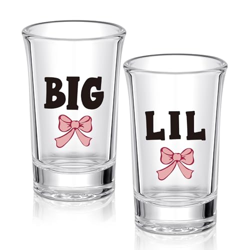 Roshtia 2 Pcs Sorority Big Little Shot Glasses with Thick Base Big Little Sorority Gifts for Women 2 oz Tequila Shot Glasses Mini Glass Cups for Drinking Glassware Party Favors(Bow Style)