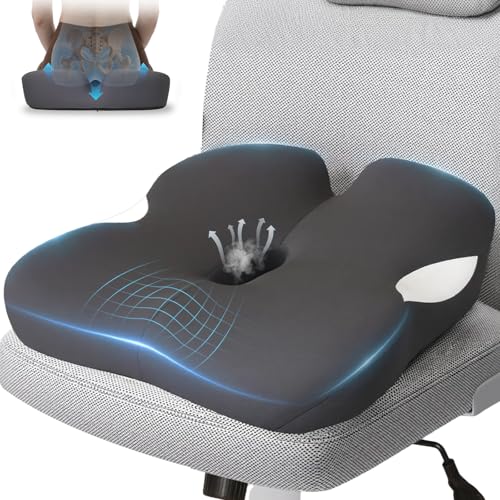 JarryStart 18.5" x 16.5" Extra Large Memory Foam Cushion, Tailbone Pain Relief Cushion for Long Sitting Soft Hip Support, Breathable X Large Donut Pillow Desk Chair Cushion for Office, Home, Driving