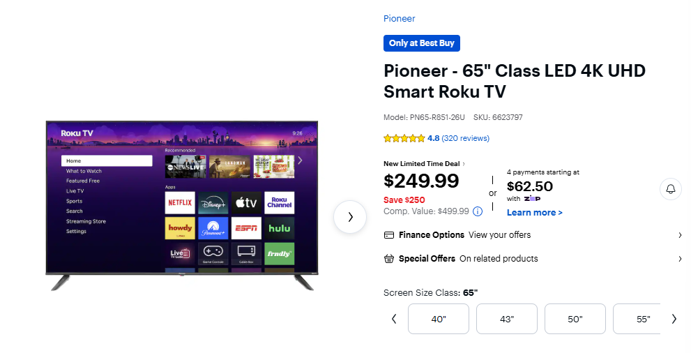 Pioneer - 65" Class LED 4K UHD Smart Roku TV